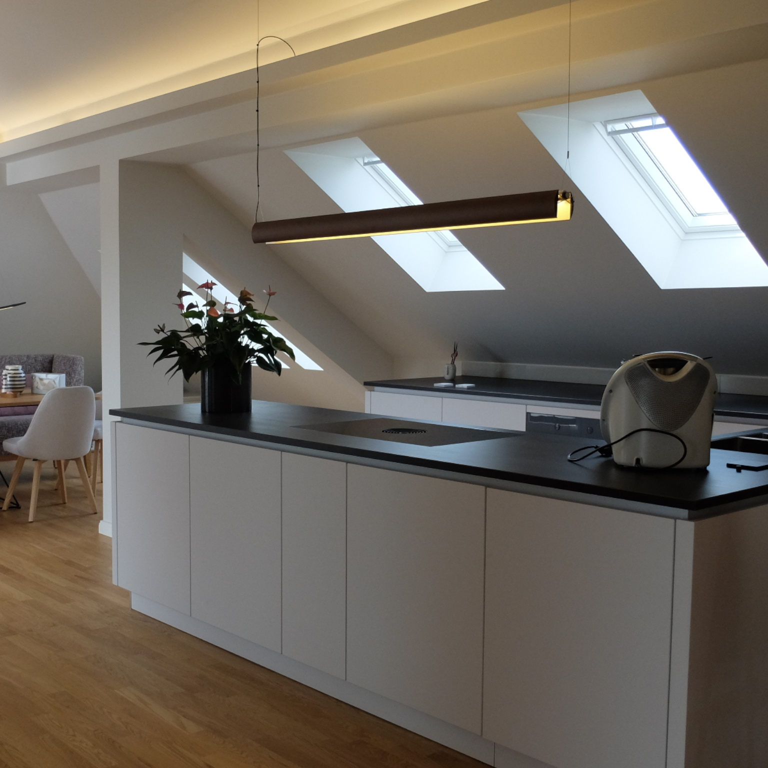 Auch die Küchenzeile im Dachstuhl wurde geplant und rennoviert. Hier ist der Vorher / Nachher Vergleich mit der geplanten Küchenzeile zu sehen!